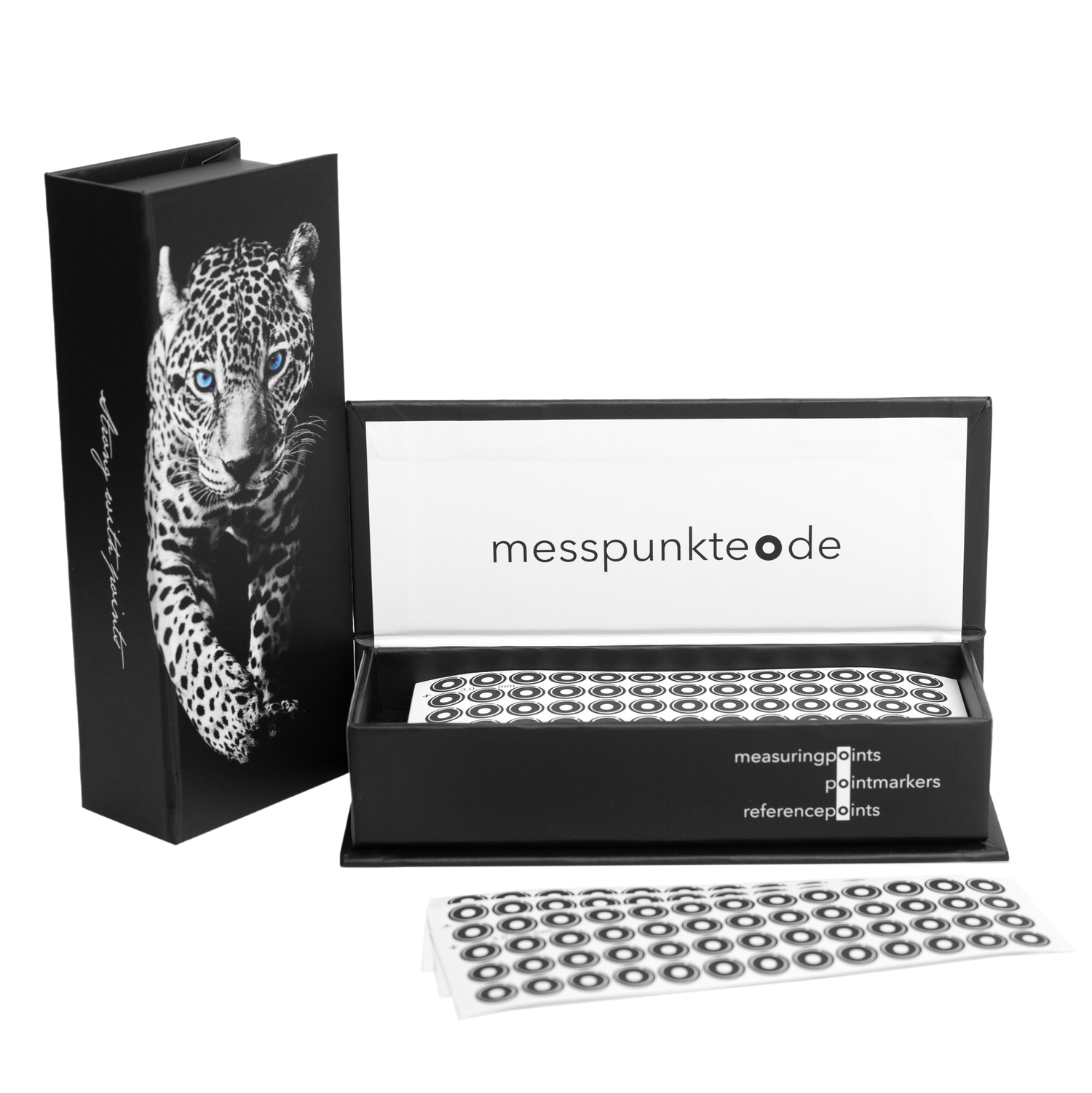 Structured light 3D scanners require dedicated target dots to measure components accurately. Each dot's position is triangulated by the scanner and allow each measurement to be stitched to the other for higher accuracy. The dot size depend on the resolution and field of view of the scanner. Feel free to reach out if you need help deciding what reference markers you need for your application.