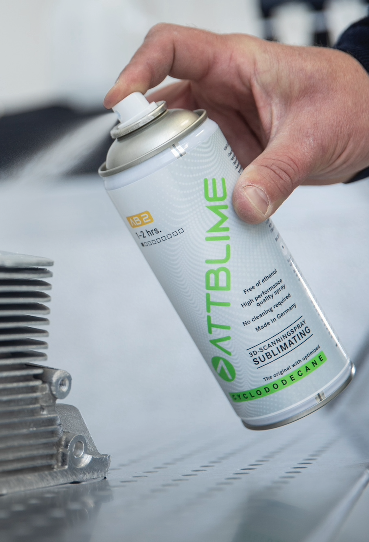 ATTBLIME developed a new generation sublimating scanning spray that does not leave residue, and as opposed to other scanning sprays available, does not contain titanium dioxide (TiO2), n-hexane or adamantine.
